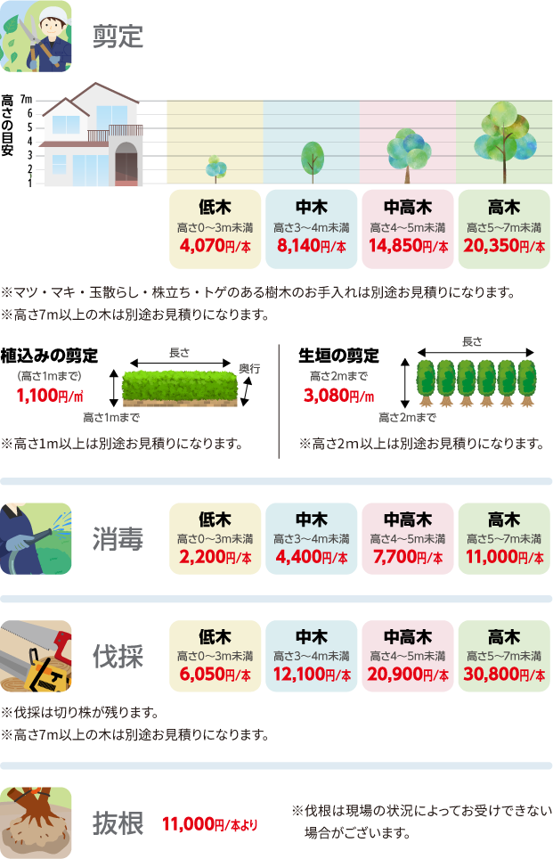 ●現場の状況によっては、価格の変更や作業をお受けできない場合があります。