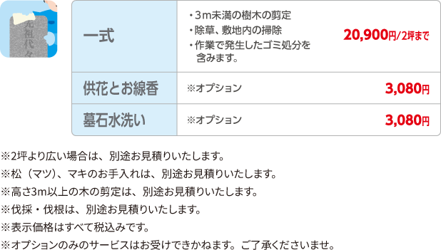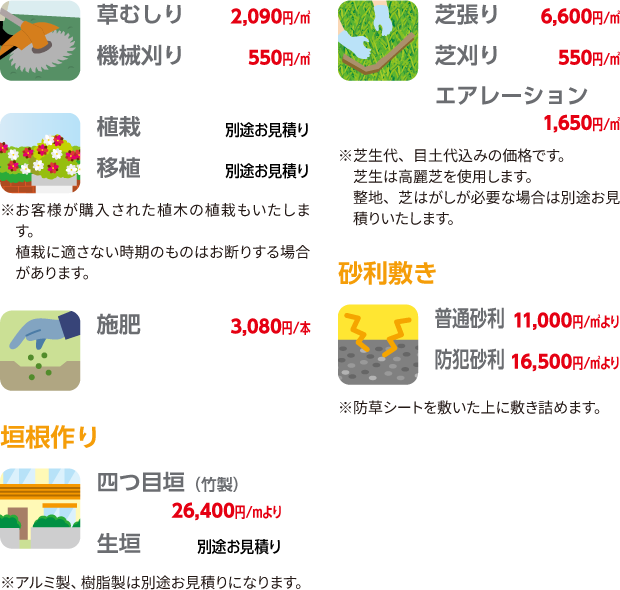 ●現場の状況によっては、価格の変更や作業をお受けできない場合があります。